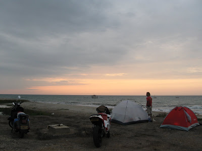 Domingo 10Ene-2010, 7am salimos de Catacaos, un pueblo cercano a la ciudad de Piura, pequeño, caluroso y conocido por sus trabajos de orfebreria...En la estacion de servicio nos "disponemos" apedir ayuda para el combustible, y ademas de los 10 soles que nos regalo un motociclista, los chicos de la estacion nos invitan a coca cola!!!Buen desayuno para ese dia!!!...Nos vamos con el tanque de gasolina sin llenarlo pero con expectativas de cojer la carretera!!!!!... Cada kilometro que avanzamos es mas arido...ahora solo hay arena y muchas dunas que terminan por caer en la carretera por lo que debemos tener cuidado.Hace mucho calor, pero el aire es mas seco, y los vientos son fuertisimos, sentimos tambalearnos en la moto y disminuir su velocidad, pero no importa vamos super parchados!!!! En el camino vemos a un viajero...a pie!!!!..esta solo y lleva un equipaje muy pequeño, claro, con este sol de 12 horas y el calor y sin un solo arbol para resguardarse es mejor ir ligero, parece ser de inglaterra, llevaba su bandera ya deteriorada por el tiempo, mucho talves!!!, nos damos un saludo con el y seguimos nuestro camino con la piel de gallina, y viendo que mucha gente comparte este sueño, y porque no esta locura!!! El desierto paracia no acabar y la gasolina sii!!!...no hay casas, tiendas o bodegas como le dicen aca en Peru, no hay nadaaa solo arenaaa...pero a unos pocos kilom